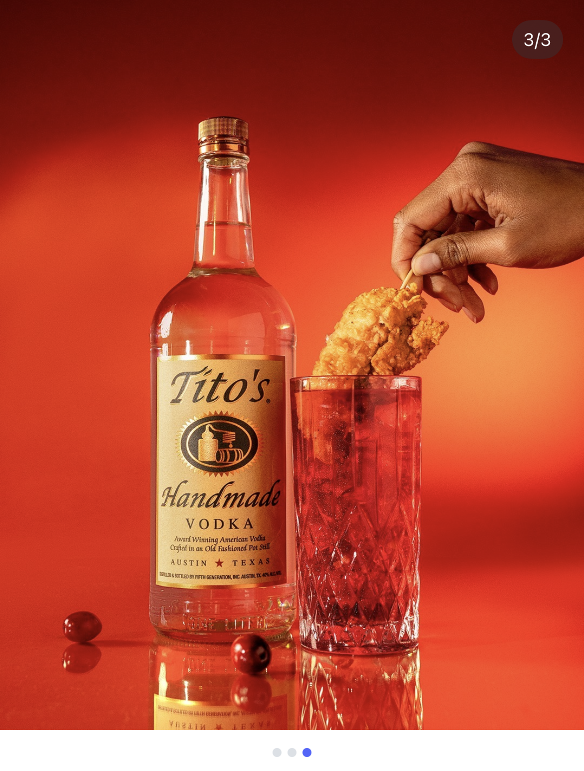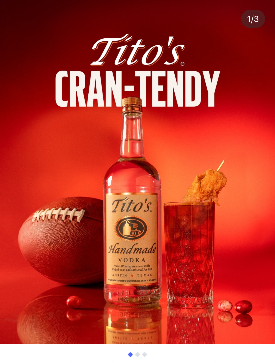 The "Cran-Tendy" is a playful brand tribute to a viral pop-culture moment following the Kansas City Chiefs' Super Bowl LVIII victory. The cocktail serves as an ode to Taylor Swift’s celebrated night of victory with Travis Kelce, where the pair famously toasted the win with chicken tenders and cranberry vodkas until 5:00 AM. By leaning into this relatable "after-party" pairing, the campaign turned a high-profile celebrity highlight into an engaging, relevant moment for Tito's social audience.